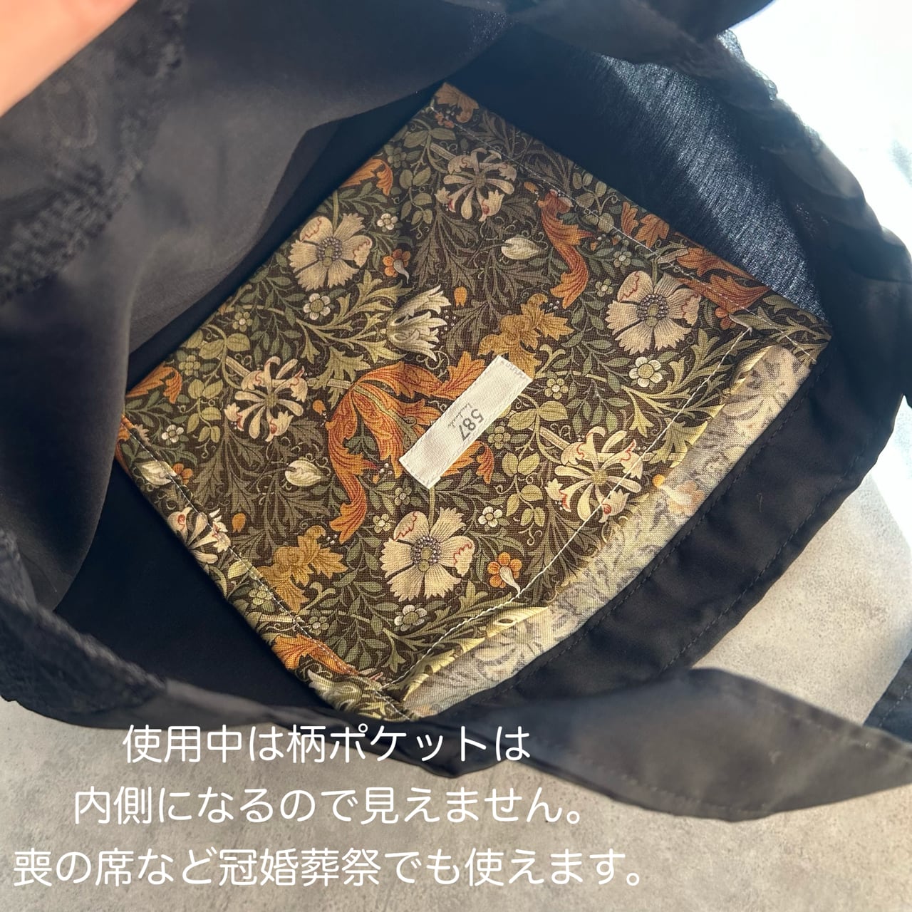使用中は柄は見えないようにした点も